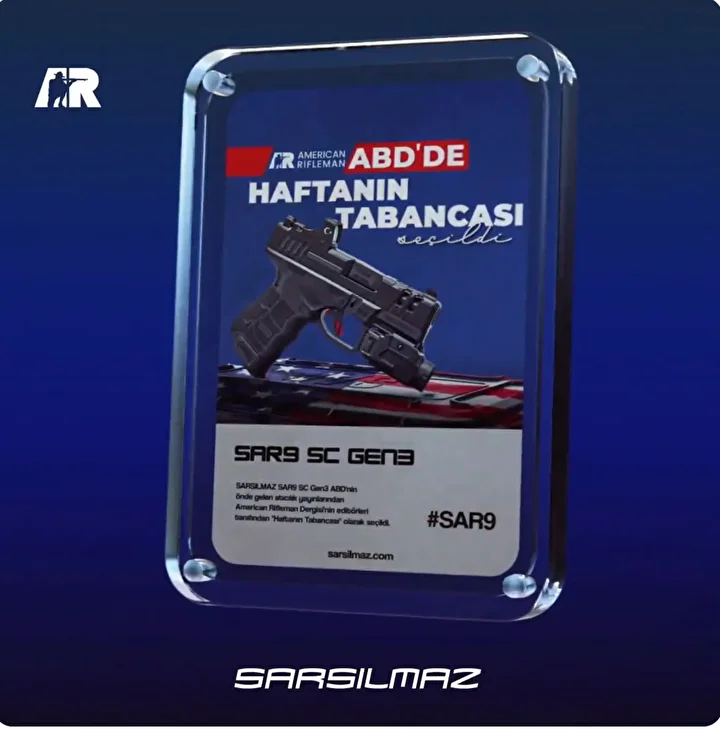 Sarsılmaz’ın bir diğer başarısı ise American Rifleman dergisinde SAR9 SC Gen3 modelinin “Haftanın Tabancası” seçilmesi oldu. Derginin hazırladığı, kısa sürede sosyal medyada geniş kitlelere ulaşan video incelemesinde, tabancanın kompakt yapısı, ergonomisi ve sunduğu yüksek performansa işaret edildi.