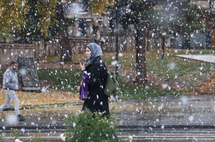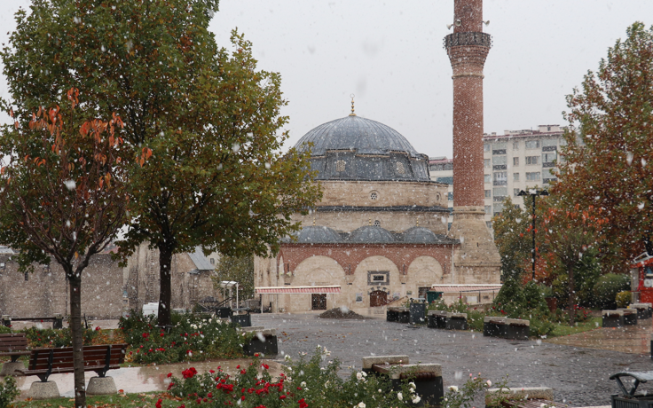 Yağışı fırsat bilen bazı vatandaşlar, tarihi Kent Meydanı’nda hatıra fotoğrafı çektirdi. Kar, kentin yüksek kesimlerinde de etkili olurken, şehir çevresindeki kara yollarında beyaz örtü oluştu.