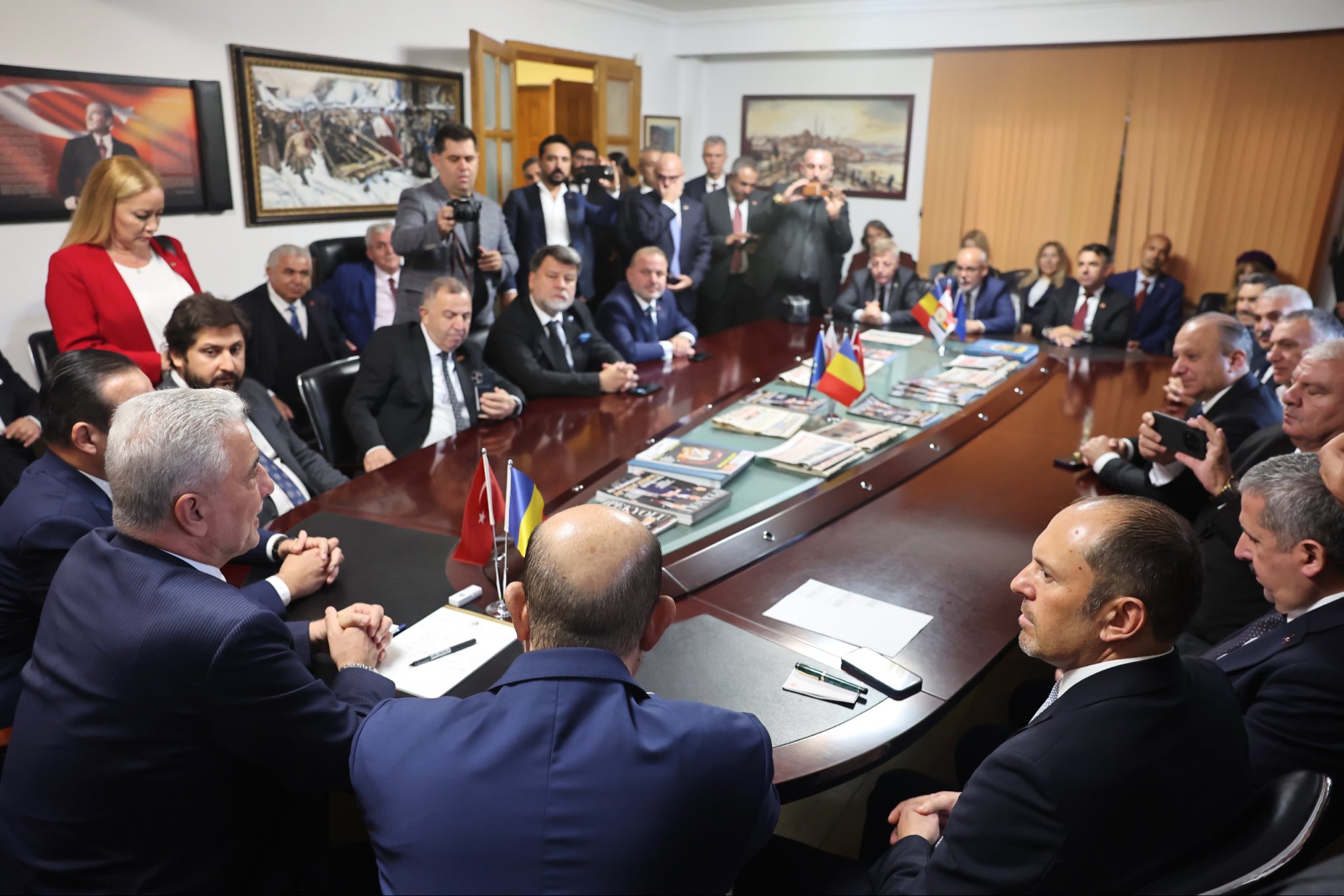 Romanya’nın başkenti Bükreş’te bulunan Ticaret Bakanı Ömer Bolat ve AK Parti Genel Başkan Yardımcısı ile Türk Devletleriyle İlişkiler Başkanı Kürşad Zorlu, Romanya Türkiye Ticaret ve Sanayi Odası’nı ziyaret etti.